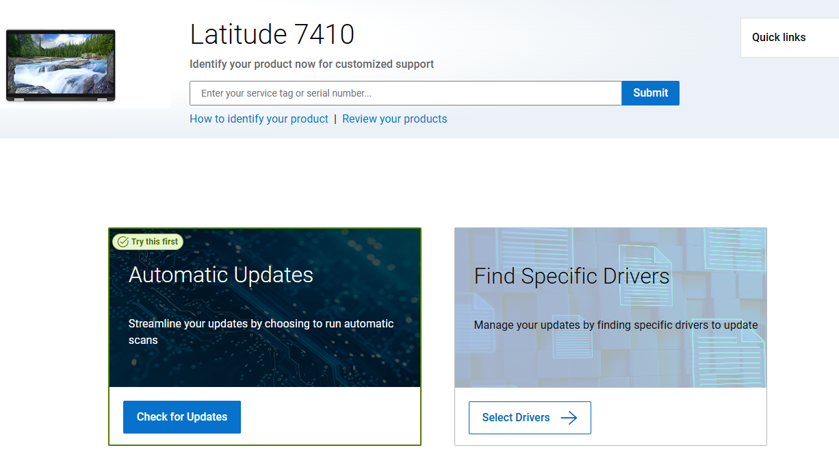 1. Click the Drivers Download URL to open the DELL drivers download page.