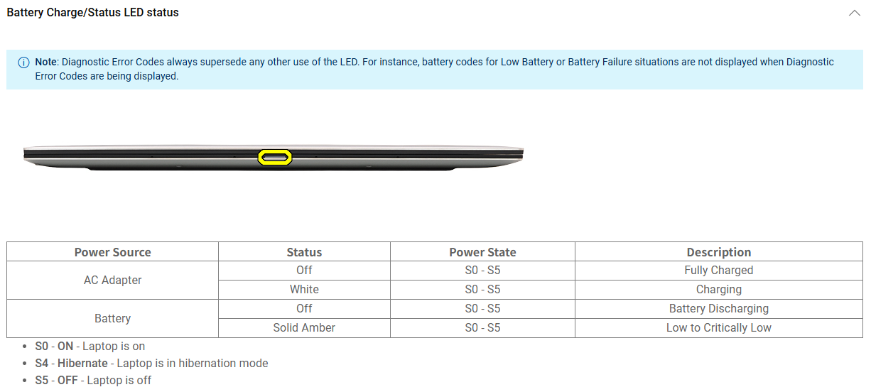 Battery Charge/Status LED status